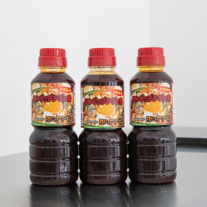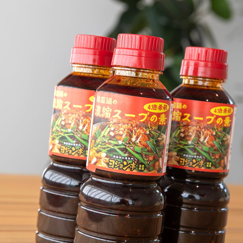 ※韓国鍋の濃縮スープの素は4倍希釈です。スープの素1本(300ml入り)で、1.2リットルのストレートスープになります。